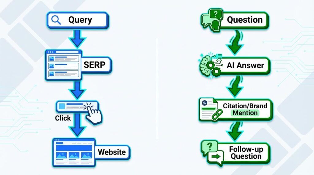 • From Traffic to Authority: Success isn’t measured by clicks to a homepage, but by the frequency with which an AI cites your brand as the expert solution.